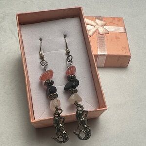 Handmade by me, these adorable nautical earrings featuring mermaid charms and a combination of genuine pink and black stones are great for adding a touch of whimsy to any outfit.