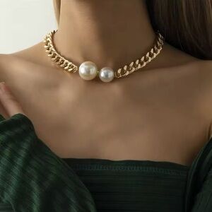 Ginevra Pearl Gold Chain Statement Necklace