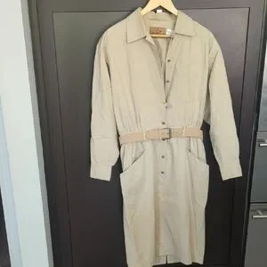 Vintage 80's Liz Claiborne Tan Belted Jacket Dress - Size 12 Good Condition