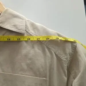Super Stylish tan oversized shirt jacket dress with a belted waist and shoulder pads, super iconic outfit from the 80's era. Ideal for layering and casual wear. Tiny brown mark on front, please see pictures.