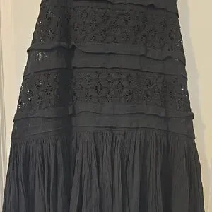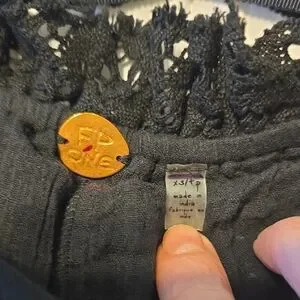 Free People One Adella Slip Dress Black Lace Mini XS Boho Festival Ruffle Hem