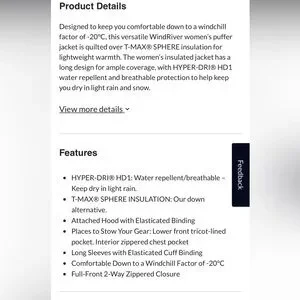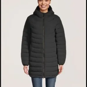 Wind River NAVY Water Repellent Breathable Puffer Insulated Long Hooded Jacket