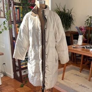 Chic and cozy off-white puffer jacket. Ideal for cold weather.