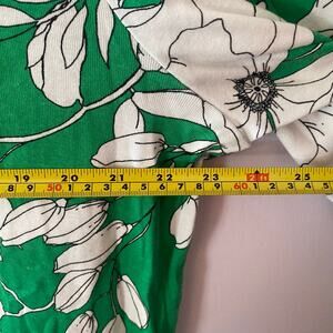 Chico's Green White Floral Keyhole 3/4 Shirt Boatneck Cotton Women size 4 / XXL
