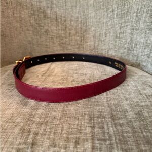 Valentino Burgundy Leather Belt with Gold V Buckle