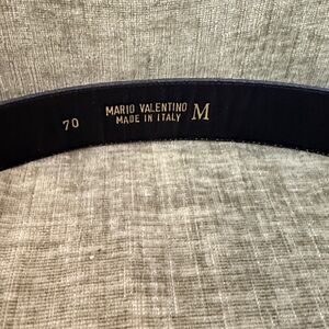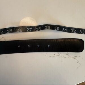 Sophisticated Valentino belt featuring a sleek black leather strap and a striking gold buckle. Ideal for elevating any ensemble. 29 inches to the last belt loop. 100% Authentic.