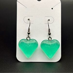 Green Glitter Heart Earrings- HANDMADE