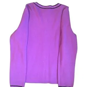 Chic and cozy cardigan by Talbots. Vibrant purple hue. Ideal for layering. The perfect over-anything layer for whatever the day brings. Crafted from a soft cotton blend with a classic crewneck. Features bold tipped details and easy button front closures. Cardigan