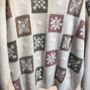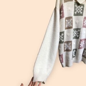 Vintage 90s Jantzen Classics Embroidered Snowflake Checkered Collared Sweater