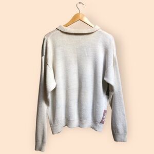 Collared knit sweater / long sleeved / embroidered details / solid back