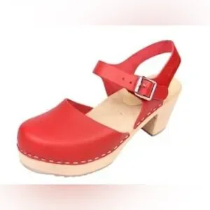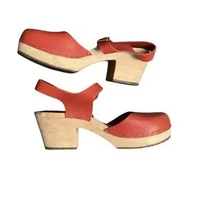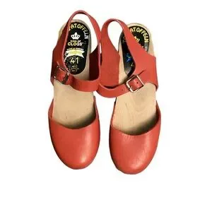 Torpatoffeln Swedish Leather Mary Jane Clog Wooden Heel-Size 41