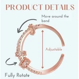 Adjustable Open Fidget Rings for anxiety for women are 3PCs pack, including two rose gold bead rings and one shining anxiety relief ring. Adjustable open design not only is easy to wear but also can fit all sizes of fingers. You can rotate the anxiety ring a few times to calm down your nerves and slowly relax.