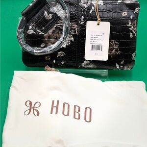 HOBO Sable Black and White Rose Floral Wristlet Bag, New