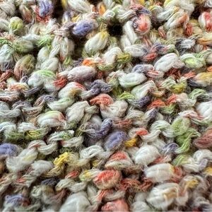 Speckled pastel tones (peach, lilac, green, ivory)