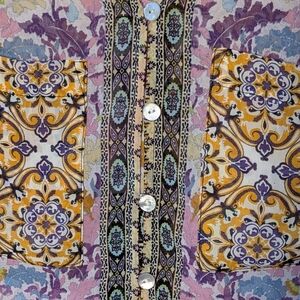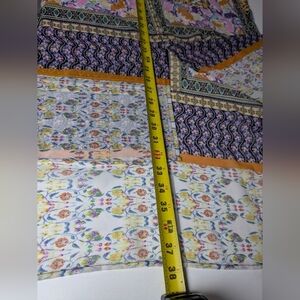 The Anthropologie Fig and Flower Bohemian Hippie Sheer Tunic Top Cover Up is a stylish and versatile piece perfect for a variety of occasions. With its floral pattern, 3/4 sleeves, and round neckline, this top exudes a boho chic character that is both relaxed and on-trend. Made of lightweight chiffon fabric, it features a pullover closure and casual sleeve type, making it easy to wear for travel, weddings, parties, or casual outings. The sheer detail adds a touch of whimsy, while the multicolor design adds a playful and vibrant touch to your wardrobe. Perfect for the beach, vacation, or a day by the pool, this tunic is a must-have for those who love the bohemian aesthetic.