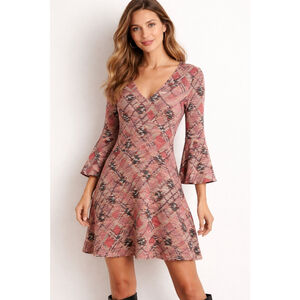 Anthropologie Maeve 3/4 bell sleeve v-neck sweater knit dress. Lightweight, fully lined.