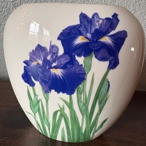 Yamaji Mid Century Japan Iris Floral Porcelain Vase Blue Botanical Style