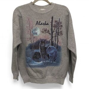 Vintage Hanes Alaska Wolves Graphic Gray Sweatshirt