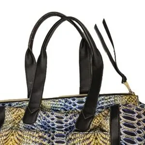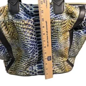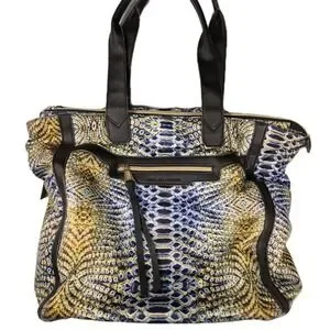 Aimee Kestenberg Snakeskin Print Nylon Tote Shoulder Bag Multipocket Zip Closure