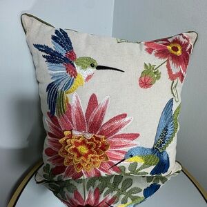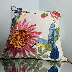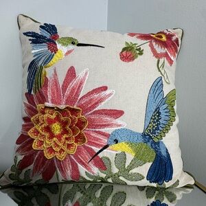 Pier 1 Decorative Embroidered Hummingbird Summer Tropical Throw Pillow