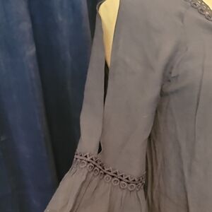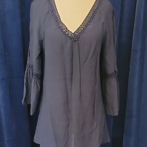 New Directions Blue Tunic with Embellished Neckline and 3/4 Bell Sleeves