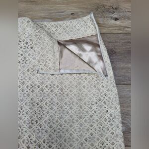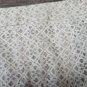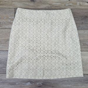 Add a touch of elegance to your wardrobe with this beautiful LOFT Cream Colored Lace Skirt! This mini skirt features a delicate lace overlay in a soft cream color, making it a versatile piece that can be dressed up or down for any occasion.