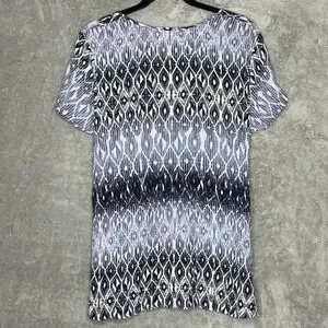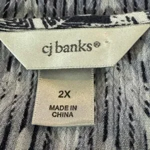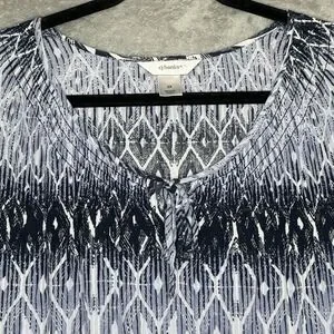 CJ Banks 2X Shirt Top Blue Geometric Short Sleeve Keyhole Scoop Neck Tunic Knit