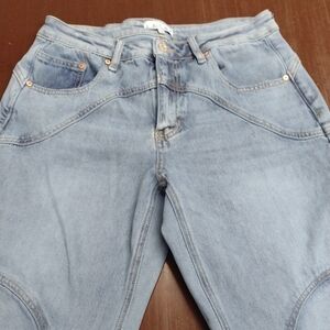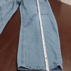 Leg: Barrel leg or "wide leg" style with a relaxed fit through the thigh and a narrowing at the ankle.