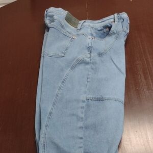 SAIGE Stylish Light Blue Barrel Leg or Wide Leg Jeans