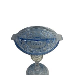 BEAUTIFUL REVERSIBLE BLUE GLASS CENTERPIECE CANDY DISH BOWLS