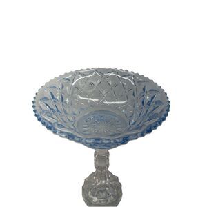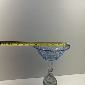 This product is a beautiful reversible blue glass centerpiece candy dish bowl, perfect for adding a touch of elegance to any table setting. The unmarked brand ensures a unique and high-quality piece for your home decor. Made of glass, this bowl features a striking blue color that can complement a variety of styles. Ideal for serving candies or potpourri, this centerpiece bowl is a versatile and eye-catching addition to your collection.