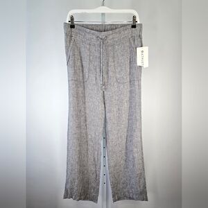 New with tags women's size 6 Athleta Heathered Linen Pants. The soft gray linen weave adds texture, while remaining nuetral enough to easily match a variety of tops. Made from breathable 100% linen with a comfortable elastic waistband and drawstring for an easy, pull-on fit. Features functional side pockets and buttoned back pockets, relaxed wide legs, and lightweight construction ideal for warm weather, travel, or elevated casual wear. Unworn with original tags attached. Ships fast from a smoke-free home.