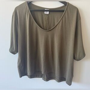 Athleta Essence Explore Crop Tee Olive Green Size L in excellent condition. Super soft! Measurements in photos