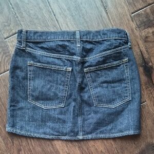 Chic mini skirt in dark blue. Features classic stitching and pocket details. Perfect for casual wear.