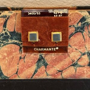 NWOT Vintage Charmante Gold Tone and Green Square Metal Clip On Earrings.
