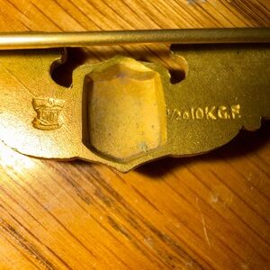 Elegant gold winged emblem pin. Perfect for adding a touch of sophistication.