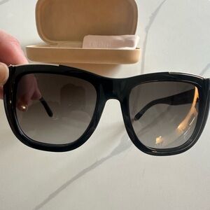 Chic black sunglasses with a sleek design. Comes with a protective case.