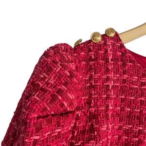 Flying Tomato Pink Red Tweed Puff Long Sleeve Sheath Mini Dress Size Medium