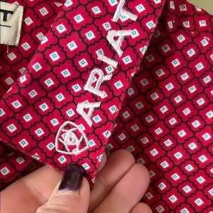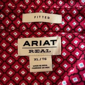 Stylish red shirt with white polka dots. Features Ariat branding on the sleeve. Ideal for casual outings. This shirt is basically brand new it was worn for about an hour for family pictures. It is a size Xl red with white,black and blue designs. Absolutely a beautiful shirt and not one flaw on it! If you have any questions please feel free to ask! Thank you for visiting my closet and Happy Poshing!