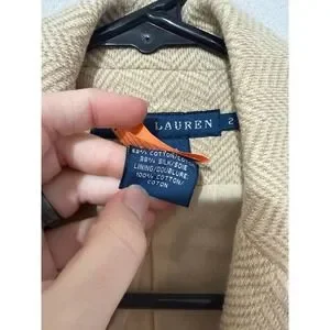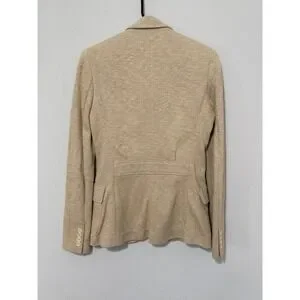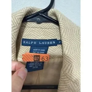 Ralph Lauren Tan Herringbone Blazer Women's Size 2 Cotton/Silk Blend Equestrian