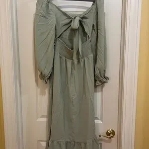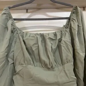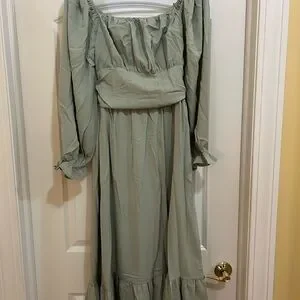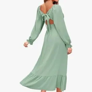This elegant green dress features long sleeves and a flattering silhouette, perfect for any occasion. The soft fabric and stylish design make it a must-have addition to your wardrobe.