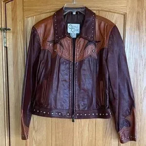Vintage Cripple Creek Two-Tone Studded Leather Western Jacket - Women’s Medium