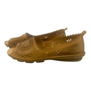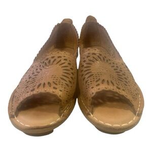 Spring Step Tan Peep-Toe 100% Leather Slip On Sandles Cut Outs Size 9.5 (40)