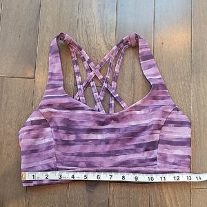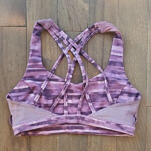 Lululemon Energy Bra, Purple Striped Women's Sports Bra, Size 8
