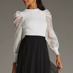 NWT Anthropologie DOLAN Left Coast Sheer-Sleeve Puff-Sleeve Top White - Small