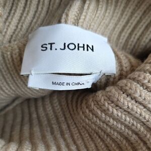 NWOT $895 ST. JOHN BELL CUFF RIBBED TURTLENECK WOOL SWEATER IN BEIGE SIZE L