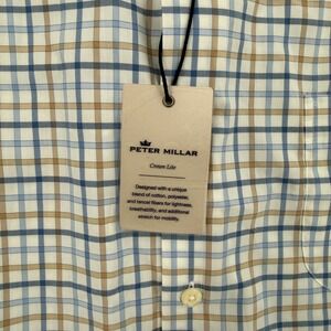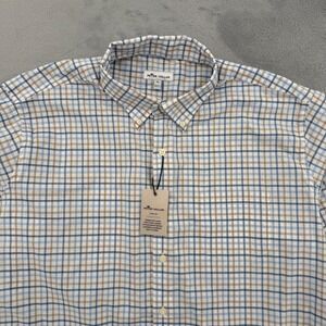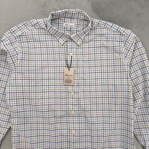 Peter Millar Crown Lite Mens Blue Tan Plaid Button Down Shirt Casual Size XL