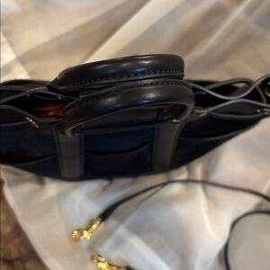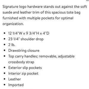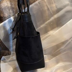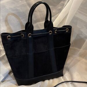 New like condition, more like NWOT! Sold Out at Nordstrom. Adjustable strap & rim, outside pockets all around, leather suede zip pocket inside, soft suede lining, suede leather body & leather bottom strap handles and trim. It has gold tone hardware. This elegant black tote bag is perfect for any occasion. Its sleek design and versatile color make it a must-have accessory. Please see all pictures before purchasing.