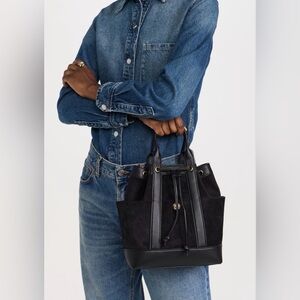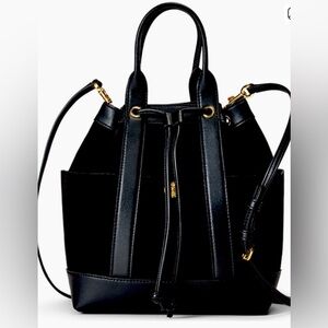 Veronica Beard Goody Suede & Leather 2 Way Bucket Satchel Crossbody Black Bag