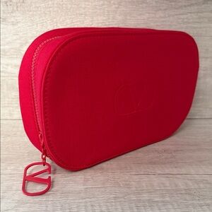 Elegant fuchsia redish pouch with subtle logo detail. Perfect for essentials. New without tags, for makeup or makeup brushes.